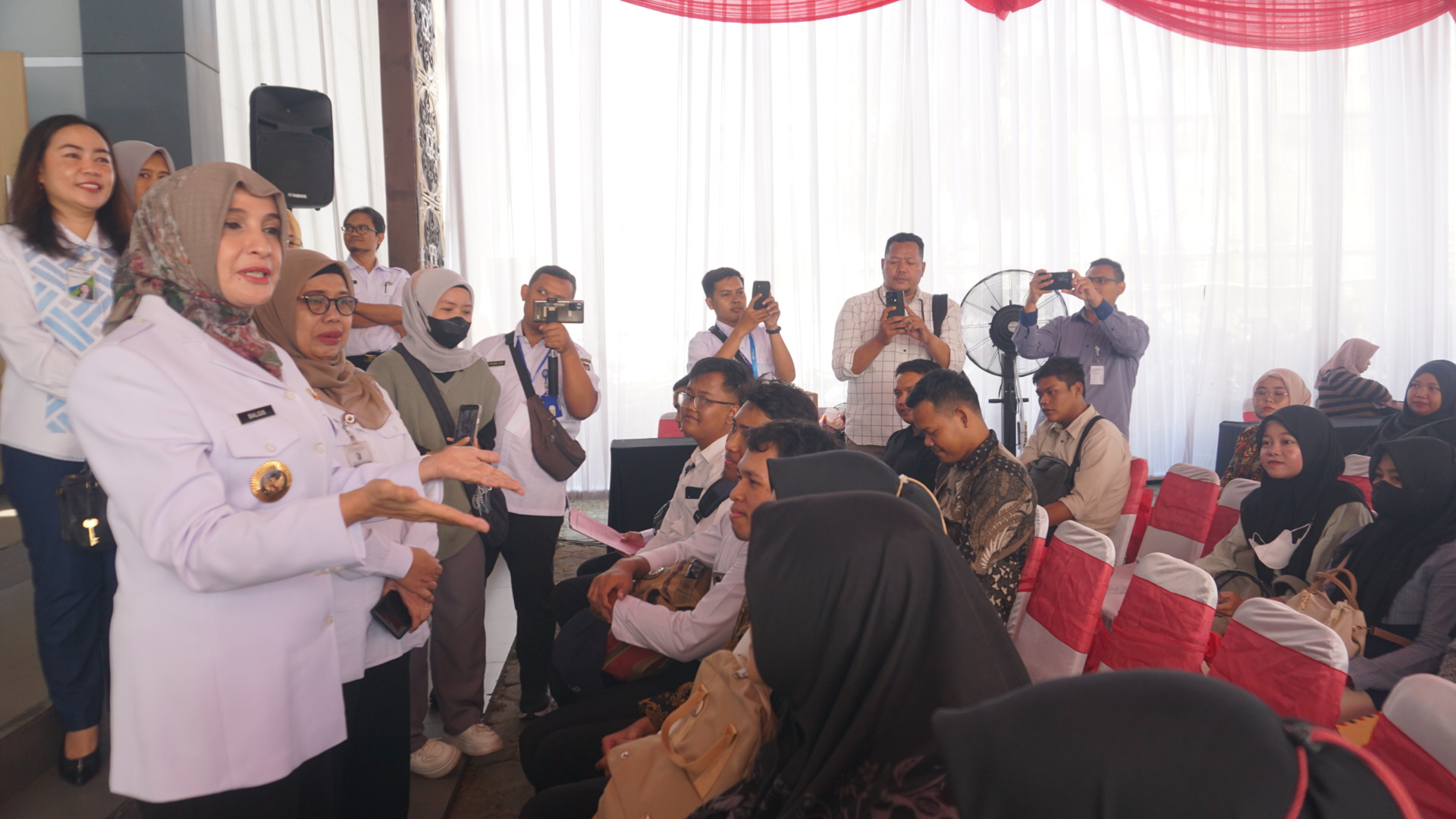 BERBINCANG : Wakil Walikota Pekalongan, Hj Balgis Diab berbincang dengan pencari kerja dalam Job Fair 2025 yang digelar di Ballroom Hotel Howard Johnson Pekalongan, Rabu 27 Agustus 2025. Foto : (mediapekalongan.com/dok)